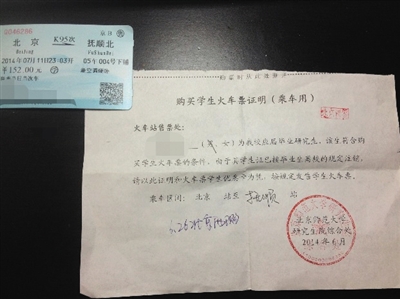昨天下午,北师大学生处工作人员表示,学校对非京籍毕业生发放了购买火车票半价证明,每人一张,严格按照学生人数发放。此外,发放证明时,学校曾委托各院系告知学生,半价证明需学生本人使用。“发放时,学生需出示学生证才能领取,保证一人一证”。对于学生私自转让的行为,工作人员表示,并无惩罚措施。